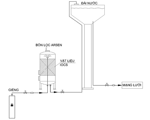 Hình 1: Sơ đồ công nghệ xử lý Asen với vật liệu hấp thụ IOCS