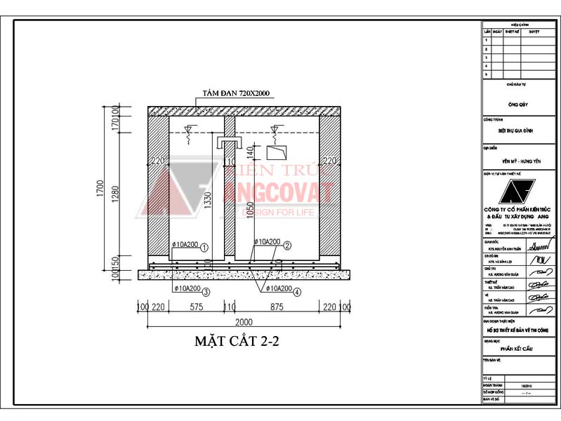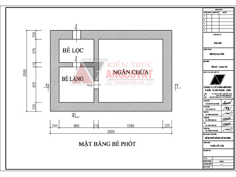 Chứa, lắng, lọc : trong đó ngăn chứa lớn nhất, có thế nằm ngay dưới khu vệ sinh tầng một . Từ ngăn chứa sang ngăn lắng để lỗ rộng ( 150x150mm) gần sát mặt bể .