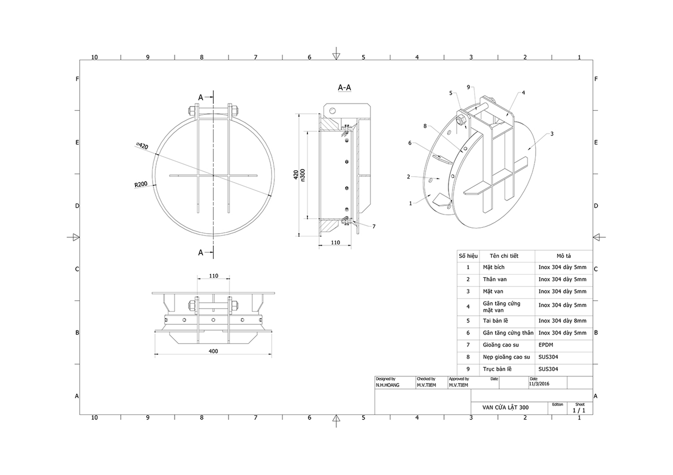 Bản vẽ thiết kế van cửa lật tròn Model 300