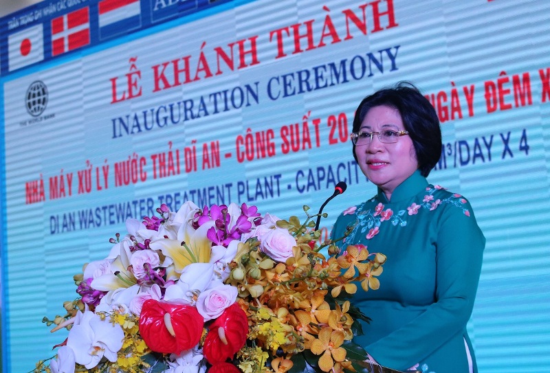 Phát biểu tại buổi lễ, Thứ trưởng Bộ Xây dựng Phan Thị Mỹ Linh đánh giá cao công tác bảo vệ môi trường của tỉnh Bình Dương, đồng thời biểu dương Cty Biwase có trách nhiệm cao trong công tác bảo vệ môi trường.
