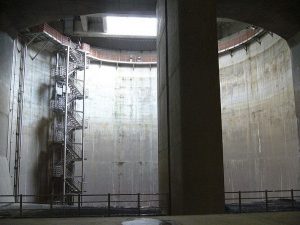 Trong ảnh là giếng đứng số 1, cao 65m, đường kính 32m.