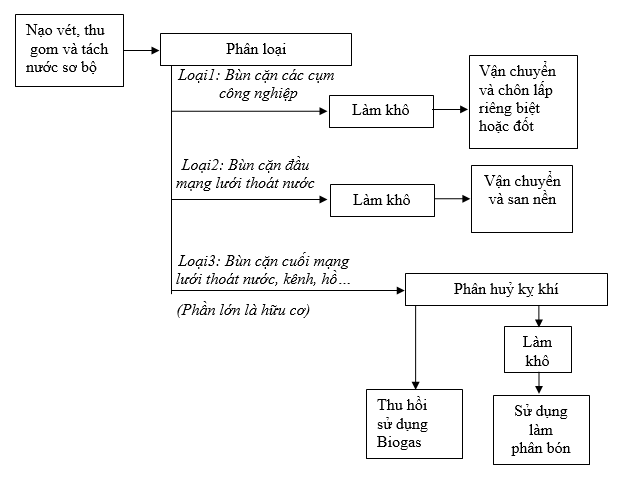 Bùn cặn hệ thống thoát nước có thể chia thành 3 loại (Hình 1) với nguyên tắc xử lý như sau:
