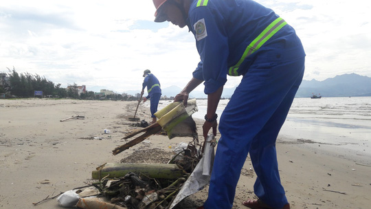 Chiều 11-6, ông Trần Văn Tiên, Phó Giám đốc Công ty CP Môi trường đô thị Đà Nẵng cho biết đơn vị đang yêu cầu các công nhân vệ sinh môi trường khẩn trương dọn dẹp một lượng lớn rác tấp vào bờ biển Nguyễn Tất Thành, đoạn qua địa bàn phường Xuân Hà (quận Thanh Khê) để giúp người dân, du khách sớm có nơi tắm và vui chơi.