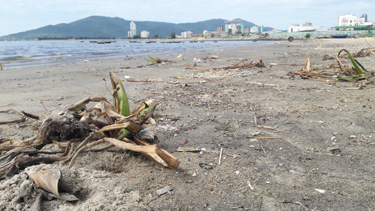 Đủ loại rác ập vào bờ biển Nguyễn Tất Thành khiến người dân không thể tắm biển suốt nhiều ngày qua