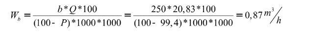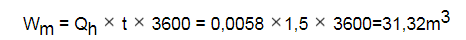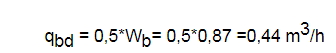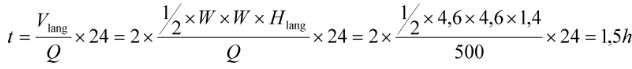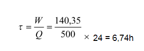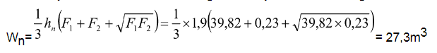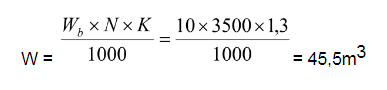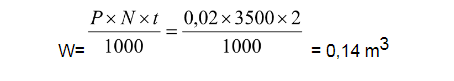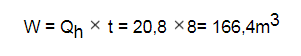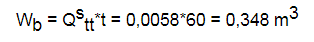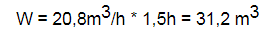 W = Q * t = 20,83 * 0,5 = 10,42 m3