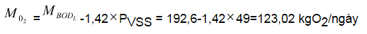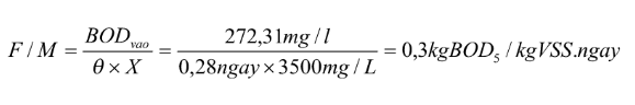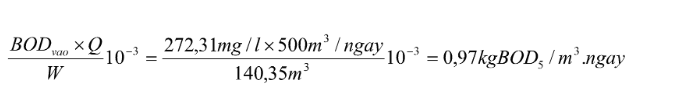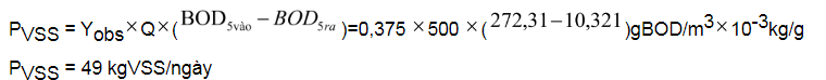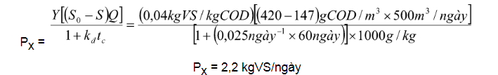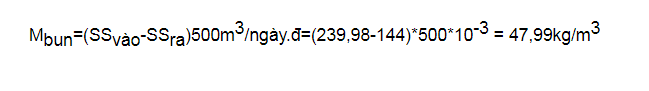 + Thể tích bùn hoạt tính sinh ra trong ngăn lắng :