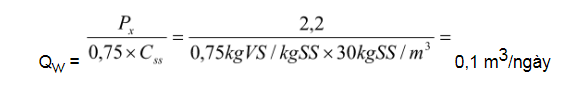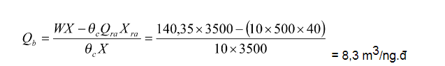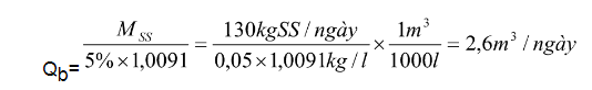 qbd: lưu lượng bùn hoạt tính dư dẫn vào bể nén bùn,qbd = 0,44 m3/h
