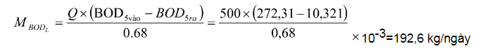 b : Lượng bùn hoạt tính dư, lấy theo Nguồn: “Xử lý nước thải đô thị và công nghiệp” – Lâm Minh Triết-Nguyễn Thanh Hùng – Nguyễn Phước Dân”