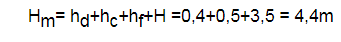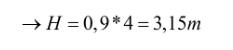 HT = h1 + h2 + h3 = 3,6 + 0,15 + 0,4 = 4,15 m