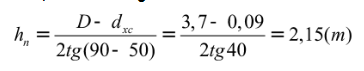 Chiều cao phần hình nón với góc nghiêng 45°, đường kính bể D = 1,3 m và đường kính của đỉnh đáy bể 1m: