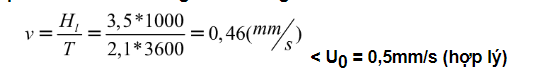 vl : tốc độ chảy của chất lỏng ở vùng lắng trong bể nén bùn kiểu lắng đứng, lấy theo điều 6.10.3 – TCXD-51-84: vl = 0,1 mm/s