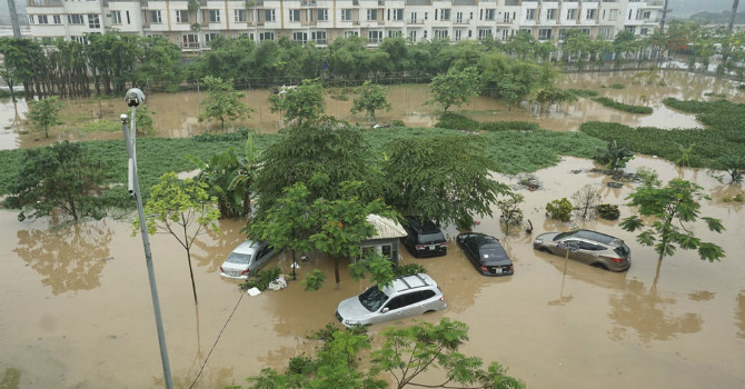 Ngập nước tại khu đô thị Văn Phú, Hà Đông, tháng 5/2016. Ảnh: Dân trí.