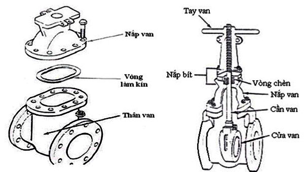 Nắp van: được kết nối với thân van qua vòng làm kín. Nó cũng có tác dụng làm giá đỡ cho tay van và trục van giúp điều khiển cửa van để cho van được điều khiển đóng mở dễ dàng.