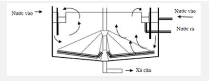 Bể lắng tròn phân phối nước vào bằng buồng phân phối trung tâm