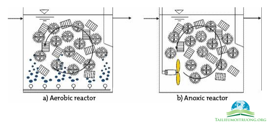 Tương tự Aerotank truyền thống, bể MBBR hiếu khí cũng cần một MBBR thiếu khí (Anoxic) để đảm bảo khả năng xử lý nitơ trong nước thải. Thể tích của màng MBBR so với thể tích bể được điều chỉnh theo tỷ lệ phù hợp, thường là <50% thể tích bể.